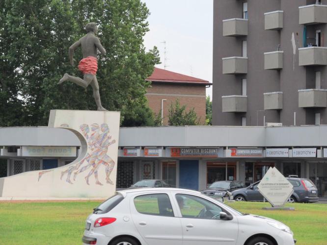 Dorando Petri won the marathon at the 1908 Olympics in London – but was disqualified – reasons in the following photo. He lived in Novellara for most of his life.