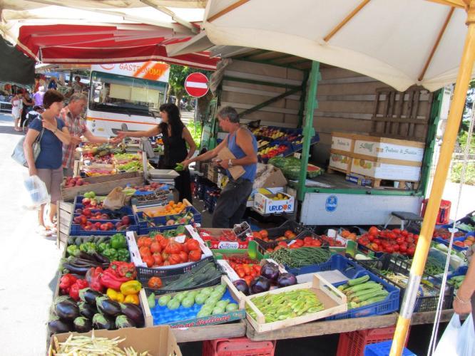 Fresh fruit and veg on offer at market in Castelnuevo Berardenga