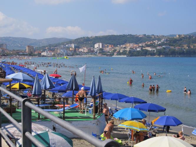 Agropoli beach in high season at 10:00 in the morning