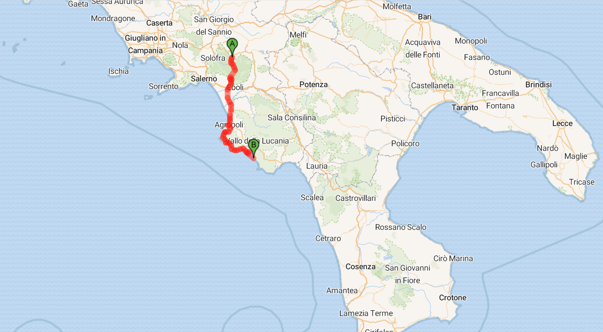 Total Distance – 77.8 km. Max speed – 48.1 km/hr, Moving average – 16.0 km/hr, Moving time – 4hrs 36 mins. Left Agropoli at 9:25 hrs, arrived at Pisciotta at 15:30 hrs.