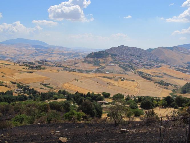 Distance 36.1 km, Max Speed 48.1 km/hr, Moving average 14.1 km/hr, Moving time 2 hrs 35 mins, Left Gangi at 9:45 hrs, arrived at Petralia Soprana at 13:05 hrs. Elevation gained 520 metres, Elevation here at Petralia Soprana 1147 metres asl.