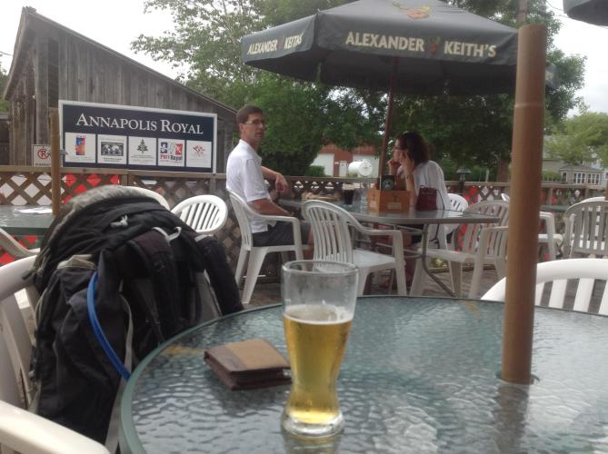 So I find myself in Kentville. It’s an old and very British town, which attracts tourists like Annapolis Royal but it’s a slow season. I need to wash clothes, dry the tent, and shower as its been 3 days. I was tempted towards a camp on the baseball field just out of town with an outdoor pool next to it, but the town is bigger than what is reasonable for a rough camp and more the chance of getting moved on or there being a baseball game this evening. There are two pubs however, the obligatory Irish bar and another to be investigated later.
