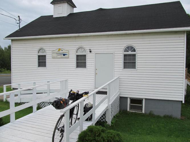 The South Canaan River which I followed for a good part of the day is not the Thelon River sadly, but it was a good ride. The village of Jemseg sits at the foot of Grand Lac (in this mainly French speaking part of NB), the largest fresh water lake in the province. It is also on the Trans-Canada highway, which fortunately I have not had to ride on today. There is a gas station here with convenience store; no alcohol of course as New Brunswick only sells trough licensed restaurants or liquor stores.
