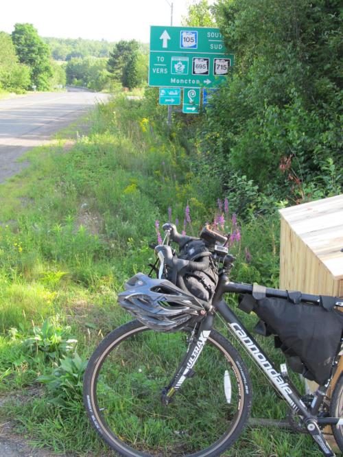Fredericton is the capital of New Brunswick, and what I saw of it didn’t early appeal. Downtown is south of the river and I was north, and had no reason to cross. I took a bike path for about 4 km through the northern suburbs and cam out back on 105 but north of town.