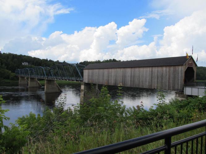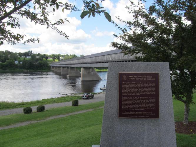 This was not an uneventful day, biking days rarely are. A hilly start to the morning for the 40 odd kilometres to Woodstock. From Woodstock on to Hartland, which is famous as you will see from the photos for having the world’s longest covered bridge. Why covered you may ask? Many are in eastern Canada and New England. I suspect the answer lies in the fact that headless horsemen cannot ride through them.