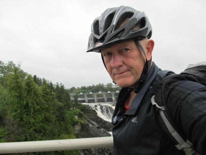 Of course as the road heads up the St John river it climbs, and more so as it reaches Grand Falls.the town is eerily quiet, not only is it pouring with rain but also it’s New Brunswick day.