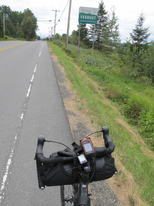 Border patrol come-customs officers on these small outposts can be incredibly thick, and I thought I would ask this guy a few simple questions to test him, but my prediction had been correct. I asked him how far Island Pond was and he said about 30 minutes for me. All downhill he said. I already knew it was 20 miles and at a higher altitude than the border. It took 90 minutes. I asked him the weather forecast, he said heavy rain in about 20 minutes. After about that time the cloud broke and the sun came out, it’s been out since. I asked him if I was now on the Green Mountain Loop bike trail (there was a poster of it behind him). He said he had never heard of it. H asked me a question, he asked if I was doing this for fun, or as a second job. I know the border are strict on illegals entering and working without green cards, but what job could he have thought I was doing?