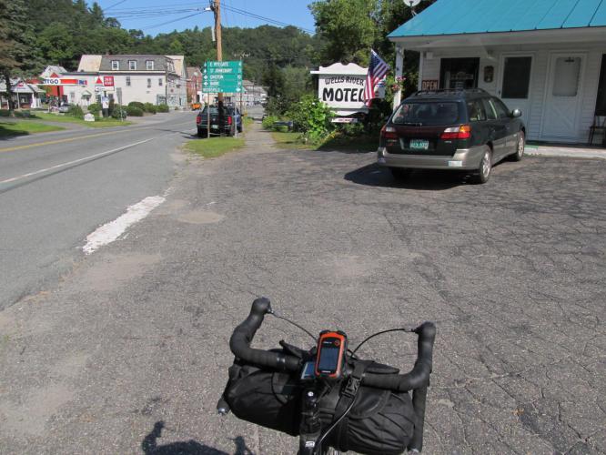 Across the Connecticut river and into New Hampshire immediately after turning out of the motel. Before that decent coffee, eggs and hash browns at the Lunch Counter cafe. This is a point at which two Adventure Cycling Routes cross. The shorter Green Mountain Loop crosses with the coast to coast Northern Tier. After the bonus kilometres I covered yesterday I opted for a more scenic and circuitous route today, with a big hill thrown in.