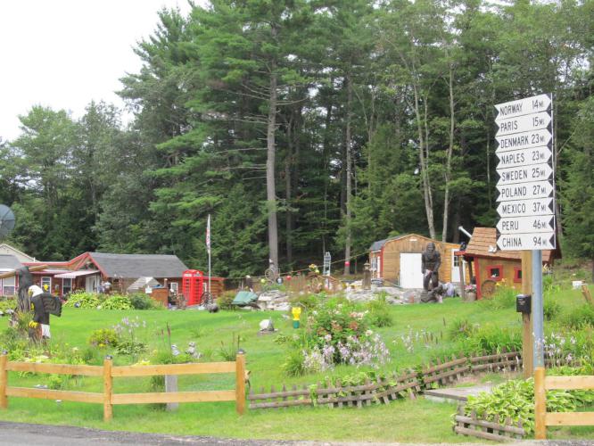 The Mucky Moose last night was good for some Smuttynose IPA, a bit of the Red Sox win and some sports conversation sat at the bar. I needed to get off the tourist route today and managed that by going north as soon as crossing the State Line into Maine. I still followed the Northern Tier coast to oast, but there was much less traffic, pleasantly undulating hills and several interesting lakes, much better riding therefore. It is cool in the mornings here in the mountains, but each afternoon has got warmer for the last few days, and tomorrow they forecast storms. They threatened this afternoon, much more humid than the last few days.