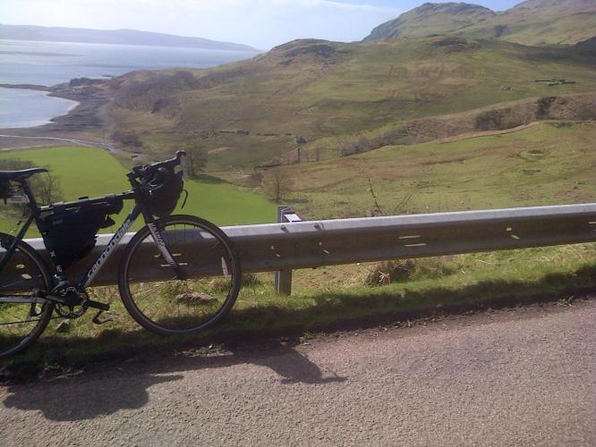 In heavy showers and that southerly still I had 50 miles to the Mull ferry. The ride follows the sea loch to Glenuig then heads over the hill to Moidart. Around the sea loch on a wonderful road, and into the village of Acharacle for coffee and lunch. There is a tremendous bakery here.
