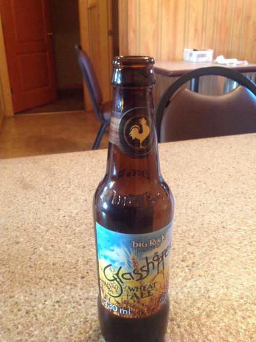 This is from the Big Rock Brewery (the name from the Big Rock I passed) and is decent, Grasshopper – a Wheat beer at 5% – good on a warm evening