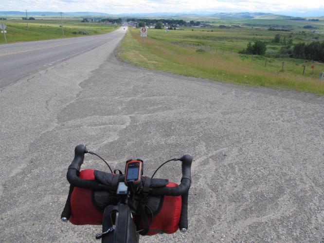 With a stormy forecast and only 14C I hit the first storm just as I started. It is certainly strange cycling through a big city as the first thing you do. The downtown and skyline isn’t so big, but it sprawls. Calgary also has an ipad app for cycle routes. Very few were bike only, and most just along side a major road, so certainly nothing special. It took me the best part of two and a half hours to hit the southern city limit. It wasn’t a warm morning, perfect to be honest, so a sandwich at Sobeys supermarket then onto the major route 2 headed south for a speedy 15 miles.