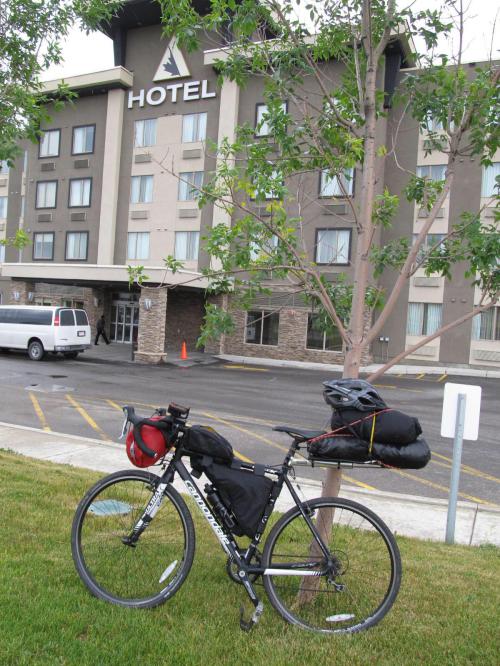The Acclaim Hotel, at Calgary Airport. And the bike set up and ready to go.