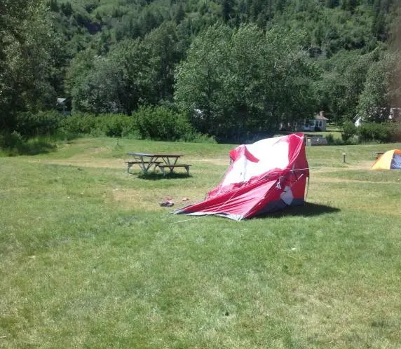 Fred’s tent – this is just the soaking wet inner. His fly took off two nights ago, and the replacement tarp took off last night.