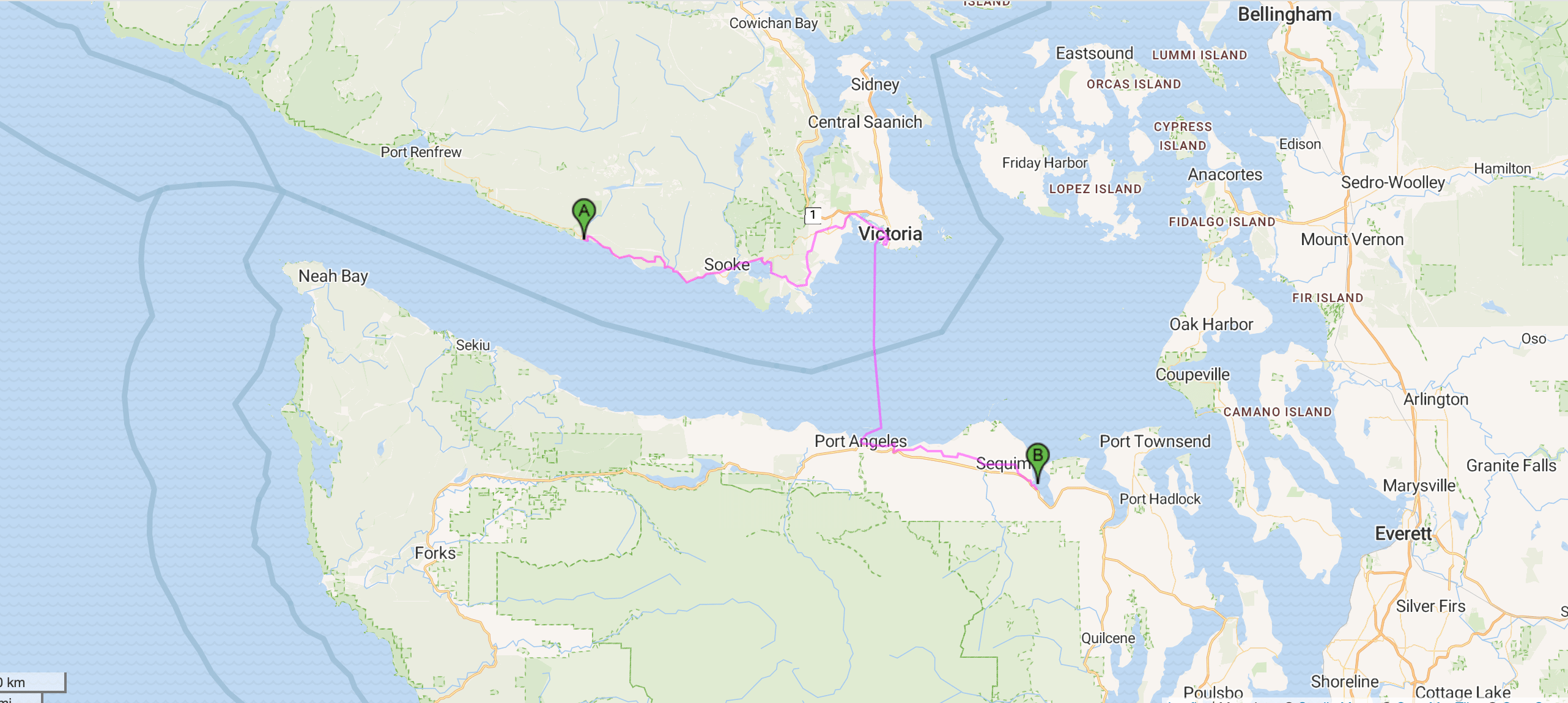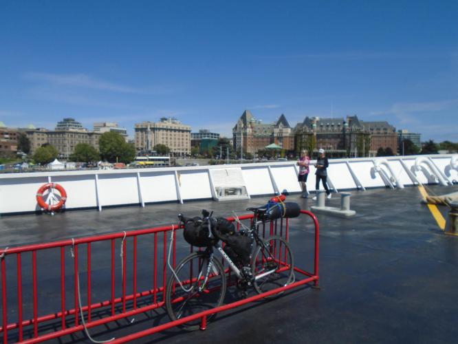 At Sooke I took the chance to call into a bike shop. Since Vancouver I have had instability in the headset coming down hills and over rougher ground. It was a good move as the bottom bracket of the headset was practically finished. 90 minutes there gave me a chance to catch up on the Internet and grab a coffee. From there the traffic increased by tenfold and with only occasional shoulder it was much less rewarding riding. I was in Victoria in plenty of time for the 3 pm ferry though.