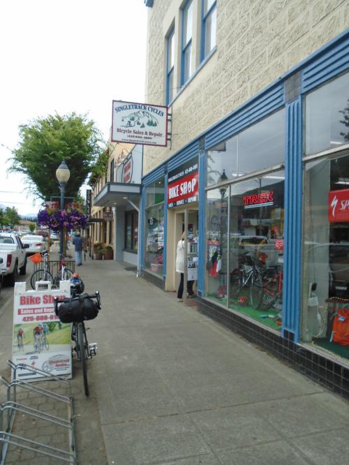Bike shop in North Bend – good advice on route ahead