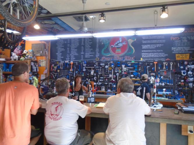 Besides, I’m keen to take advantage of Dirty Fingers Bike Shop’s Happy Hour $3 beers at 5 pm.