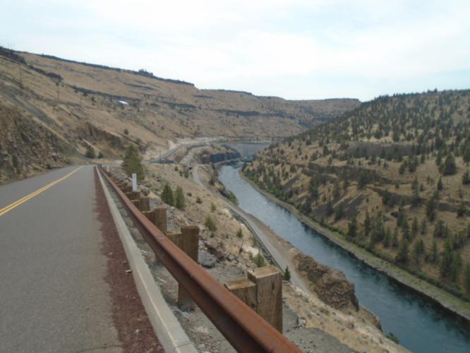 Then there is a descent into Warm Springs. The small town is the base of the Indian Reservation. It doesn’t have much, a market, a casino, and an excellent cafe which is in a second hand shop. Great sandwiches, wifi, and very friendly service. It is also on the Deschutes River. Rather than stay on highway 97 all the way to Bend, I had planned to head up the canyon, to Pelton reservoir, no as it is a Saturday, I had booked a camp spot, just as well, as they are all full. It’s a water sports place, but laid back. Many Hispanics and Asians as there are in this part of Oregon. There’s a bar and restaurant nearby so will visit later. After a tough day yesterday, good to be finished early today.