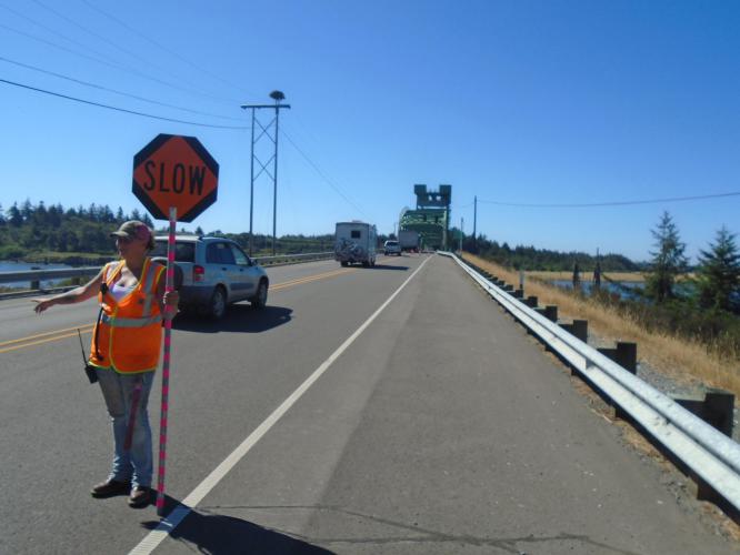 Flagger on the bridge – 10 minutes here – always good to have a chat, quite fancy this job