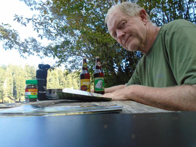 Plotting tomorrow’s ride in camp over a couple of quiet beers