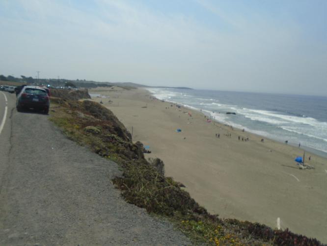 Reaching Jenner the traffic became much heavier. There is a run of beaches between Jenner and Bodega Bay and every one was packed, not even any parking available. Goes with that the problem of cars not indicating pulling in and out of partings. It’s almost like city riding, you need a lot of shouting and be prepared to bang on some roofs.