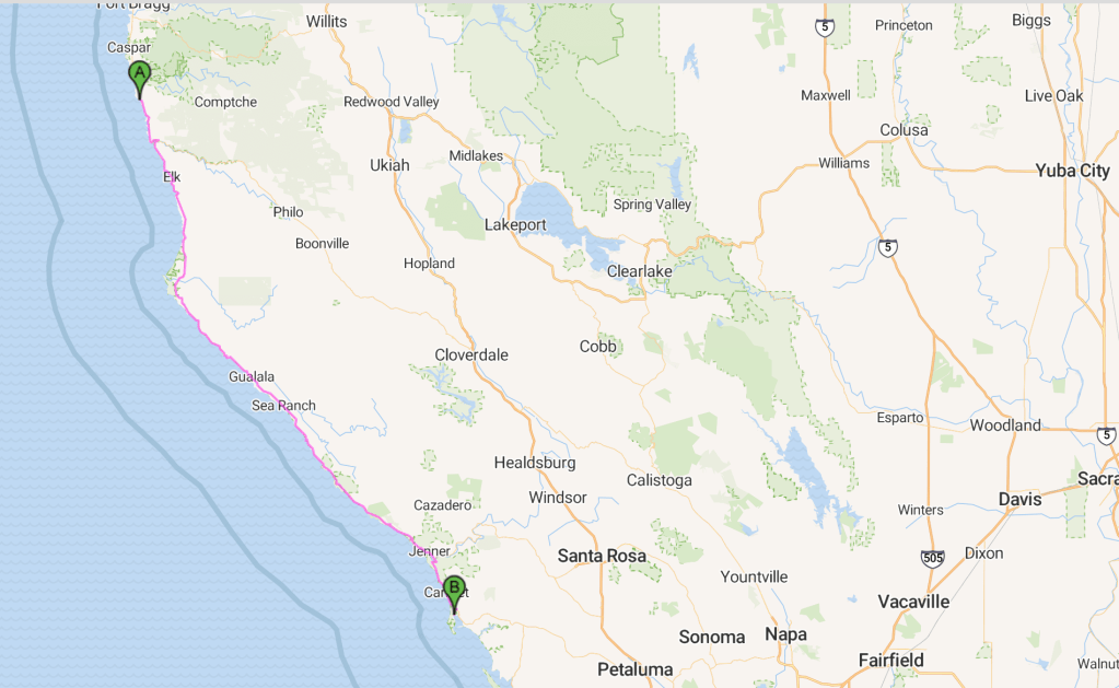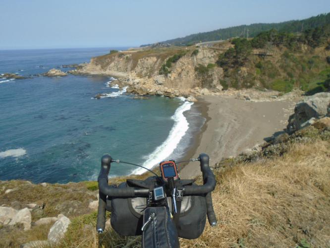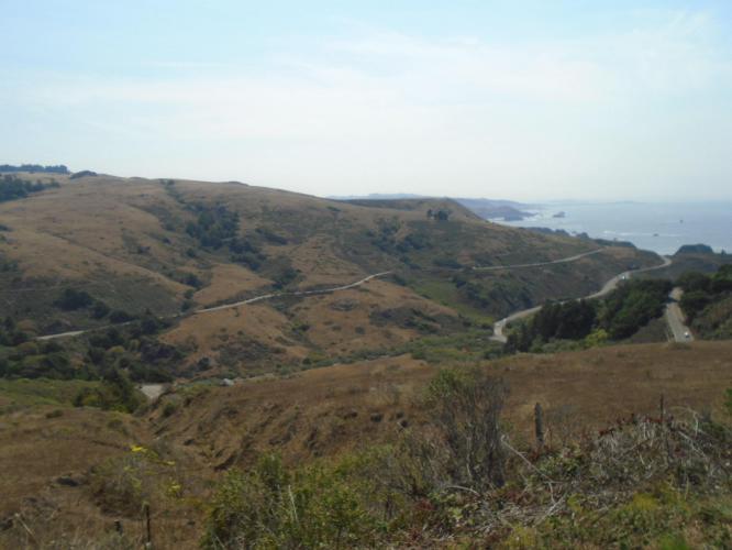 Today’s ride would be one of the greats in North America if it wasn’t for the traffic. By the time I hit the best bit the traffic had started to get busy, although most was coming from the city for an afternoon at the beach or lunch out. The county now is Sonoma and the ride over the cliffs is spectacular. The road climbs to about 250 meters and then undulates around for 5 miles also before descending. Both ascent and descent are steep. In many places there is nothing between the road and the drop down the cliff to the ocean. With traffic and little shoulder often times the space is only half a metre. There were a fair few road cyclists out for the morning also and I rode with 3 of them for a while. Incredibly there were RVs and huge caravan trailers on the route. One of those caravans grounded out on one of the hairpins which was quite funny, and stopped the traffic for 10 minutes giving us a free run down.