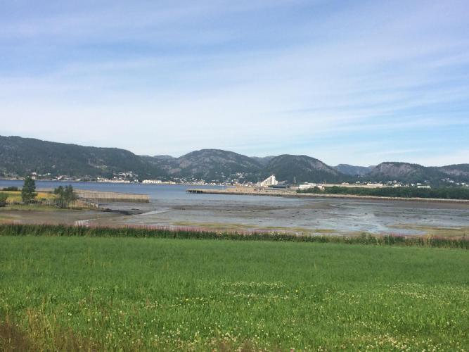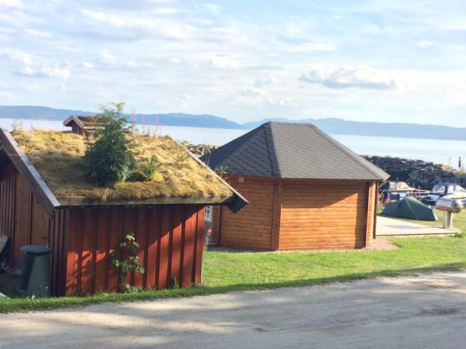 The 720 is a much more pleasant road to ride on. The RV17 had mainly been inland also, but now back to the coast and along a narrow fjord. Back to the regular ups and downs of the fjord roads. At Malm I stopped at the supermarket to stock up for dinner, not sure there was one in Follafoss. By now it was in the early 30s and I had just about had enough for the day. On 13 km though to Follafoss, where in a smaller Co-Op the manager said I could camp below the cemetery on the fjord. Indeed this was a great option. There is water, toilets, benches and grass, free for cyclists. An early finish also, but much required in today’s heat. It is humid also. These hot days, I’ve had two so far, seem to sneak up on you.