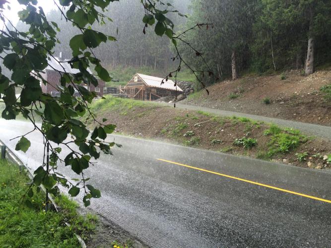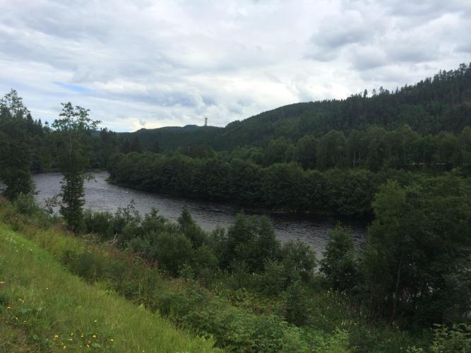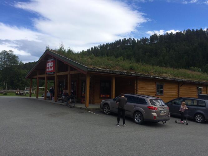 It became humid and there were two heavy showers, almost storms, each for about 15 minutes, but when the sun was shining it was late 20s. Arriving at Surnadal it was good to see camping almost immediately, and a supermarket within walking distance meaning no need to carry dinner by bike, as usual.
