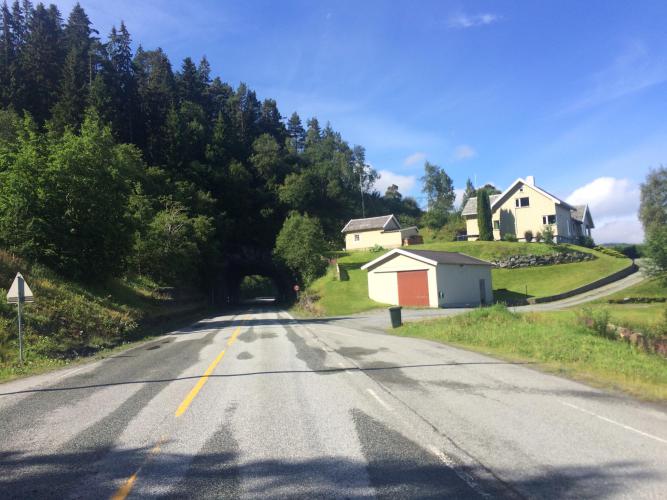 At least the sun was shining as I set out on I guess what is the old road around the coast of the fjord. There is now a series of tunnels further inland which bikes cannot take. It was good riding and a way to air the stiff legs with a few rollers. I passed through Orkanger after an hour or so, and it was pleasantly busy. The tourist information is at a smart hotel and I asked about the roads and villages with stores. From then on it is up one river valley to Rindal, then down another. This is about 80 kilometres and goes up quite steadily to just above 300 metres. It isn’t a quiet road, as its one of the routes to Kristiansund, but the traffic was well-mannered.