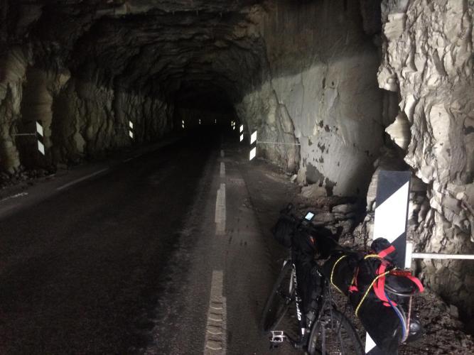 On the quiet 331 road a series of unlit tunnels make the riding even more spectacular
