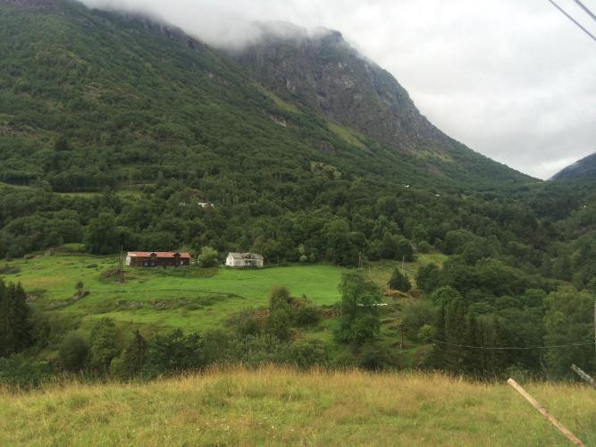 From where he dropped me it was a short ride into Flam. Having been dry since I got out of the cloud this morning, it was now raining again. Flam is a bit like Geiranger, extremely touristy. It is the end of the famous downhill mountain bike route, the Rallarvegen. I have been here twice before with school groups. The ferry (that doesn’t run any more) from Newcastle to Bergen and a rented house in Geilo for a weeks riding. I had thought at one time of riding / pushing up. The gradient is 35% in a few places, but also the track was only clear from snow a few weeks ago, and there are still uncleared rockfalls, it would be pretty much impossible. So reluctantly I will get the train up to Finse and continue from there.