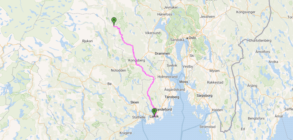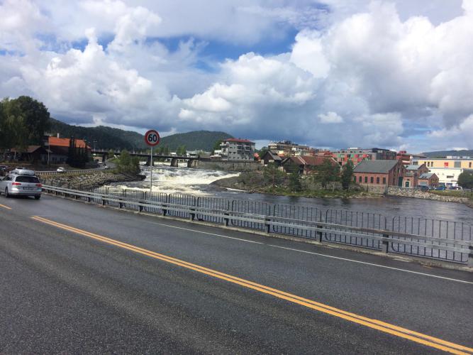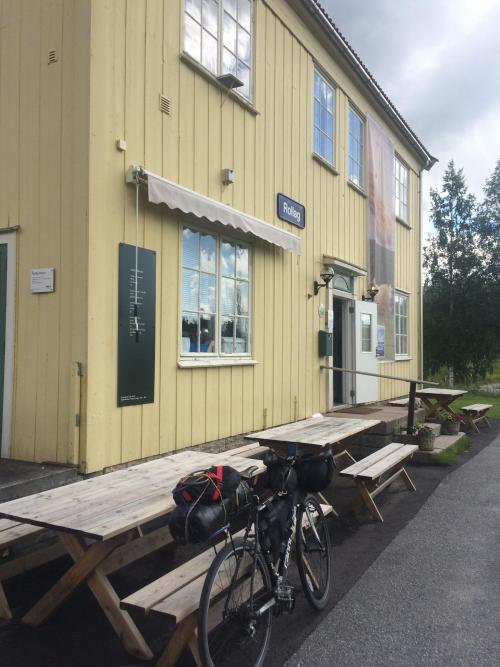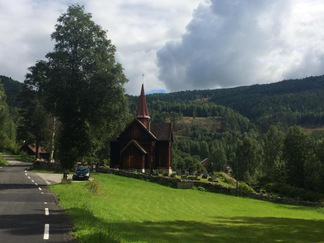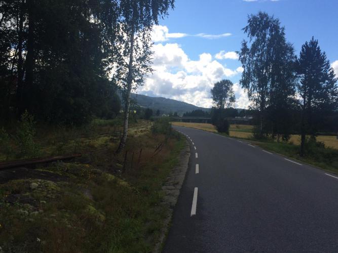 A great night in the train and a clear morning, but still I was a bit slow to get moving, leaving just after 10. The only options to stay off the RV40 were in the morning, on what must have been the old road on the opposite side of the river. Riding on their was wonderful through quite a special area of the country also, Rollag Kommune. There are many traditional log houses here dating back to the 12th century. The old railway runs along side the road also, 15 years since it operated. All day I followed the Numedal river valley, though the road had its climbs. This is also National Cycle Route 5, all the way through to Larvik, though after Rollag I have no idea how it can be called a national route, there is no shoulder on the 40 at all.