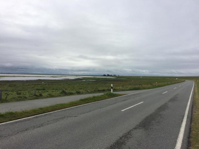 The route soon regained the cycle path next to the sea, the North Sea route. Though a decent path, this is very exposed at times, most times actually. I came inland a bit on other cycling routes and think it was wise to avoid the brunt of the wind. Much of the morning was through National Park, and there were many other soaked cyclists braving the conditions. Schleswig has some nice towns and of course history, but I think though relatively busy, it must be well down on tourists with a week like this last one of weather.