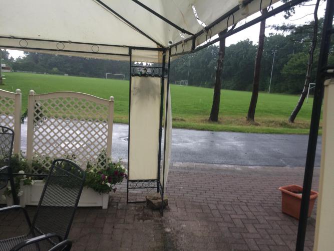Sheltering from the heavier rain at a sports club bar, sadly closed or I probably would still be there…