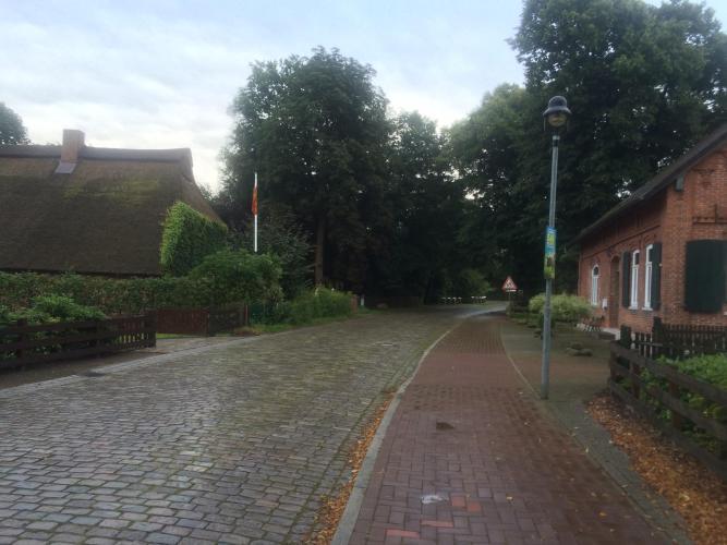 I have left the North Sea for a few days, and a considerable amount of the wind not surprisingly. I therefore made much better progress than in the last week. It had started raining however, and after a couple of hours of it I was keen for a cheap room again. I asked in four successive little villages and all were full and kept directing me to the next one. I could see why they were full also, the restaurants looked good and they were in very attractive villages; Bramstedt, Hagen in Bremischen, Uthlede and Meyenburg. Eventually I am in Schwanewade. The pension isn’t anywhere near as smart, but correspondingly cheaper. Hence also, I am quite a bit further on than I had planned, so it can be a quiet day tomorrow.