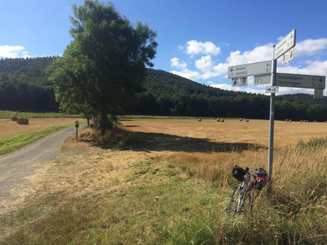 Great weather and great riding today. Firstly a correction though. I said yesterday I was on Eurovelo 1 when actually it is route 2, which in Germany is called EuroRadweg 1. Either way, I’m on that route for a few days, but this morning thought I would do a bit more in the Harz mountains first, and headed a longer and higher way over to Seesen. The climb goes up to 500 metres, but the surprise was that a reasonable part of it was at 15%, steeper than Norwegian climbs, so a good test. The traffic wasn’t too bad, and the riding generally really good. After Seesen the climbing wasn’t over by an means though, as I wound my way across the Harz foothills, quite up and down, with one decent climb of 200 metres in late afternoon.