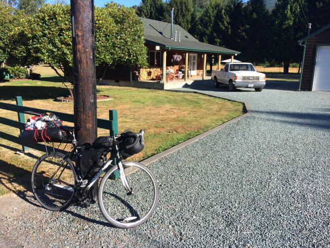 Taxi from Preston to the airport late Saturday night for a hotel room for a few hours and a 4:30 am check in. British Airways shuttle to Heathrow and on to Seattle, arriving on time at 11:30 am. The US airport with the worst passport immigration time average was having a slightly better day. Within an hour I was on the shuttle bus north with an undamaged bike box. Two hours later into Burlington and a half mile walk with a bike box to an unglamorous motel.