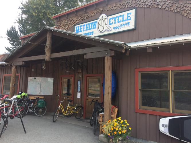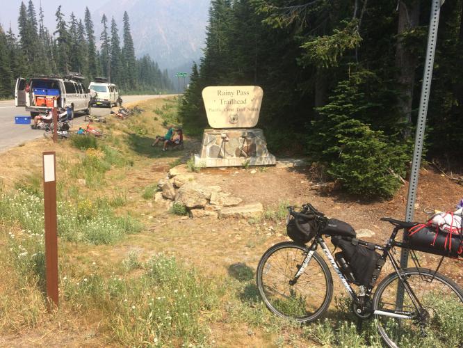 Down 200 metres off Rainy Pass then up again to the higher Washington Pass. Not so hot up here, but after the rapid descent to Mazama it was like riding into a warm hair dryer.