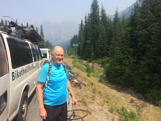 On the pass with the riders of Bike for MS who started the Northern Tier in May and will finish it this week – supported with the van for bags of course