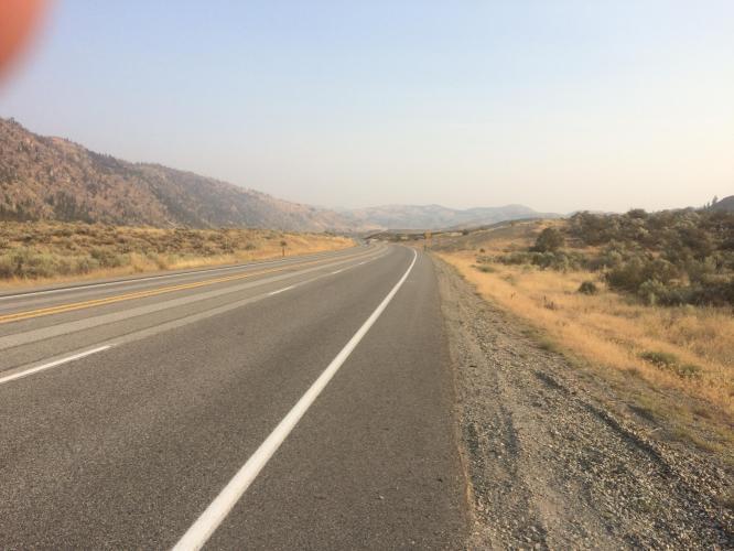 Tedious riding on highway 97 headed north – a headwind and fast traffic