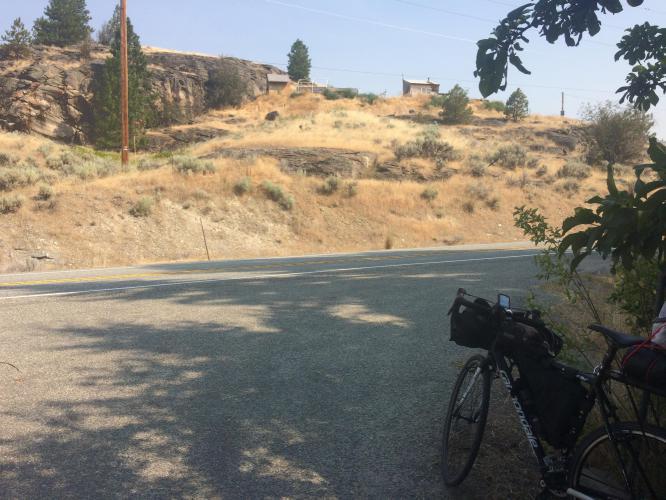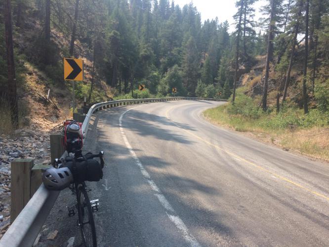 17 miles north with gentle hills into a northerly breeze on highway 97 was all the fun I didn’t think it would be. It’s a busy and fast highway, not good for cyclists, but does have a decent shoulder. With relief I was at Tonasket at just after 8:30, and started up the pass. Suddenly the riding is completely different. There was more traffic on this than the Loup Loup but still so much quieter than the 90, an it was good to just concentrate on the climb.