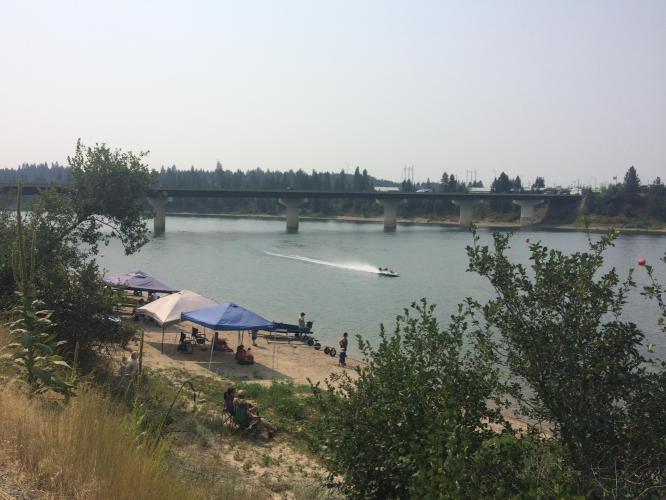 Early Sunday mornings are often the best time for riding and this was no exception. The cycle route stays clear of the busy route 2 and tales the Leclerc road on the east side of the Pend Orielle river. I saw only a handful of cars. There are some beautiful houses and most have river access and a beach. For 60 miles at least the river is more like a lake – there is a height difference of a couple of metres only. There a few gentle hills but the riding was the fastest yet, averaging 13.5 mph for the first 50 miles.