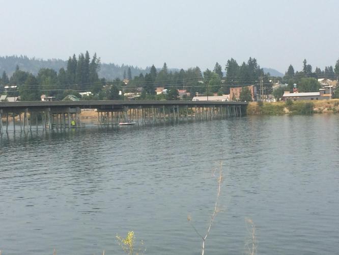 View from the bridge – across the river into Usk for a break, then back to the quiet road down the east of the Pend Orielle