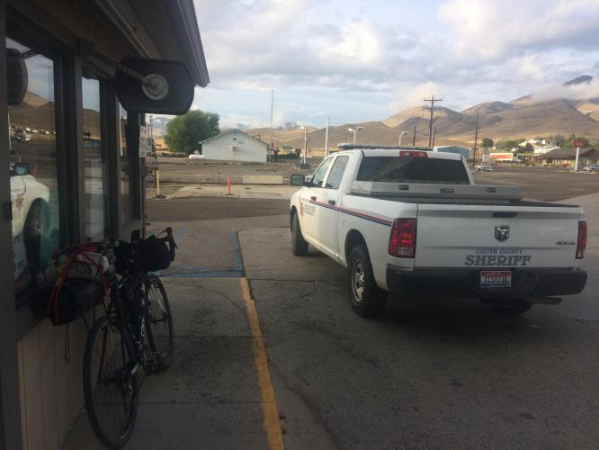 Just before heading off I grabbed a coffee at the gas station, and by chance the Sheriff was in there also. I asked about the route ahead, I knew it went up and then down, and he said: