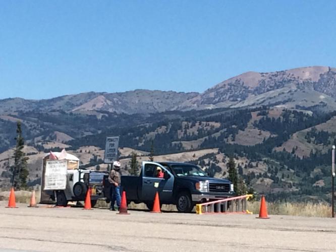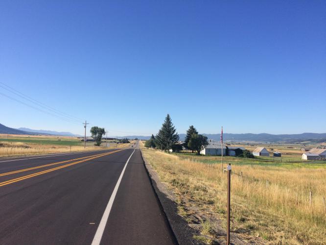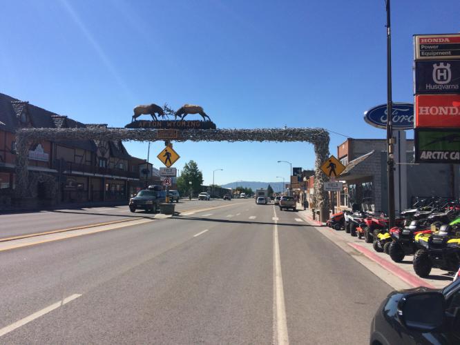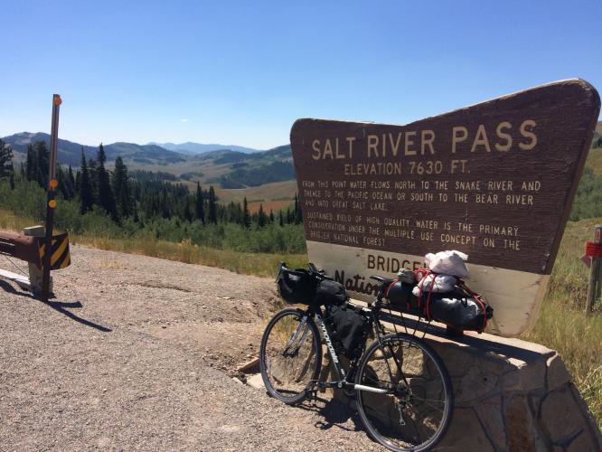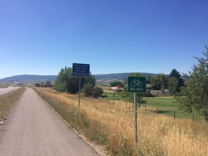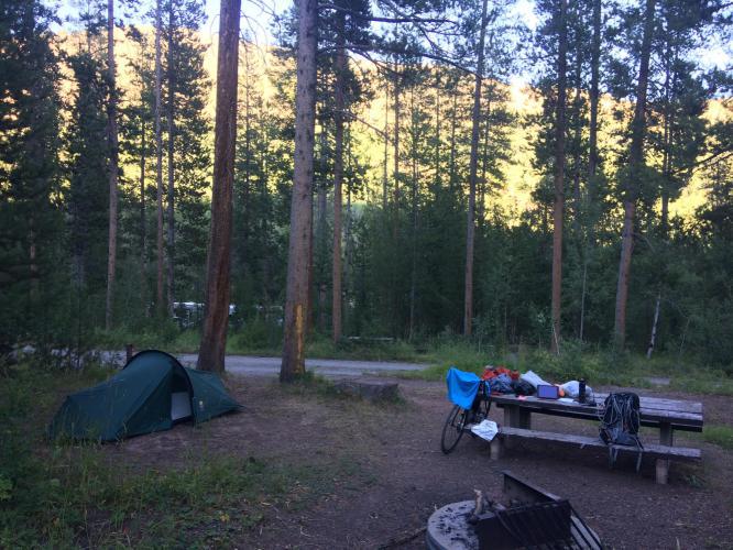 It was 4C only at 6:15 am this morning, and a bit of a shock to wake up to. It certain,y made me move more quickly and I was over the road in the cafe after 45 minutes. Today’s route was south on Highway 89 with one of those very gradual climbs for much of the morning through the small towns (villages) of Etna, Thayne and Grover. Then into Afton after 33 miles, and at 10:30 am to stock up with something for tonight, and have a break. It has more than 1,000 people, so is the biggest place around for some distance. After Afton 89 climbs much more steeply up to the pass, and I am camped just a few miles after it in a Forest Park site, which is quiet and cool, and at an altitude of 2080 metres, so I expect a chill in the morning also.