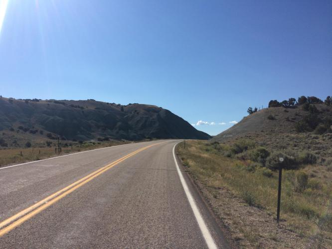 And some Wyoming hills, making a pleasant change – roads are as quiet as I have known