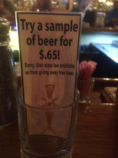 Unfortunately the picture below says a lot about beers in Utah. Even the stronger cans here in the brewery are somewhat tasteless. And expensive, draft IPA at 3.2% at $3, the same IPA at 6% at $5.75. They only have two of the six stronger canned beers from the menu. The place is much more of a family restaurant than a beer venue – to be expected I suppose, but I needed to try it. Still the best I’ve been to is Rogue, though an Oregon beer it has a HQ in Union Square, San Francisco. Roll on Colorado in a couple of days, Durango has more breweries per person population than anywhere else on Earth.
