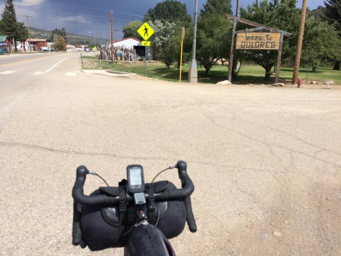 Just before the descent to Cortez there is a left turn that goes up over a hill on highway 491 for Dolores. It’s a smaller road, and has some beautiful properties on it. The wind associated with the thunder clouds hit me straight on for the last 5 miles and was blowing dust and sand also. So I’m in Dolores tonight, with a population of only 1,000 people. It’s setting is scenic, by the river, and between the mountains. Good skiing is not far away. I headed for the campground but was told that thee are ‘bears in town at present’, so they were not selling any tent sites. Apparently it’s because there is so little food for them at the moment. As a compromise she dropped the price of a room by $20 for cash, to $50, which seems like a deal, and really I didn’t have a lot of choice.