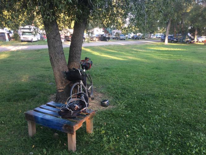 Today was the best and the worst of it accommodation wise. I expected Saturday night in a busy RV park over Labour Day weekend to be hard work, and it certainly was, even though it was free. People insist on taking their dogs with them when camping. Fortunately I have Martyn and Lindsay to look after mine, and I am sure he wouldn’t like being in a trailer behind me. The result of all these dogs on the site is of course mayhem; noise, fights and turds. This morning those problems weren’t limited to the dogs either. The toilets were all blocked, and unlike previous sites, there were lots of campers, all up early having been singing until 11. Car alarms going off at unsociable hours. I sound like a moaning old man, and indeed am one, but when in beautiful places, I do appreciate quiet.