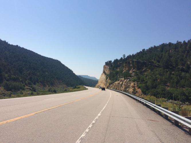 The downhill section to the Chama valley was memorable though, through forests high up, then sandstone rock cliffs, to Rio Chama valley. In this stretch New Mexico establishes its own identity for scenery, quite spectacular.